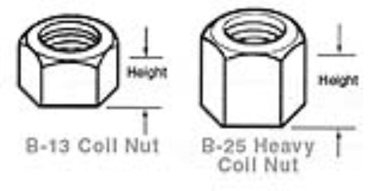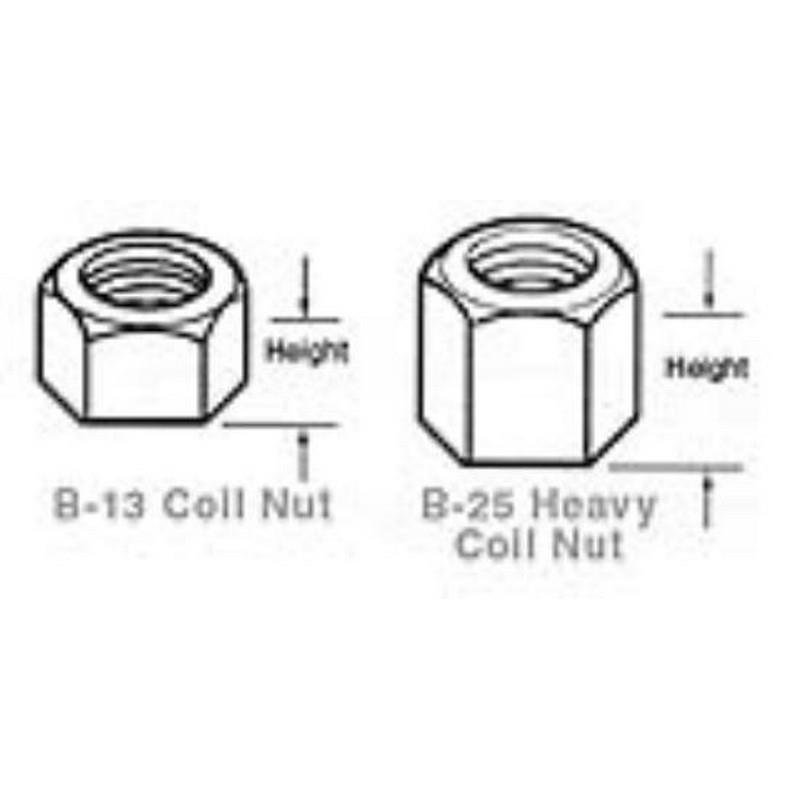 • Dayton Superior B-25 Heavy Coil Nuts are available with coil threads in 1/2", 3/4", 1", and 1-1/4" diameters.