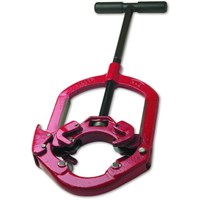 Hinged Cutters™ feature four wheels to cut steel, stainless steel, cast and ductile iron with only 90° to 110° handle swing. Only 4 In. (125 mm) clearance is required around pipe. Strong guide fingers ensure perfect wheel alignment for square cuts. A closed 360° frame on the hinged cutter forces all energy into cutting the pipe for maximum efficiency. There is no shower of sparks in this cold cut. Reed has the only hinged cutter that tracks every time and the only one recommended for ductile iron, steel, and stainless steel to schedule 100. This tool is a Reed invention. H6S cutter.