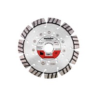 The Metabo Diamond Cutting Disc 150x22.23mm, "CP", Concrete Professional (628572000) is a powerful segmented-edge disc designed for fast and aggressive cutting of hard materials. It is particularly suited for concrete, reinforced concrete, concrete pipes, curbstones, hard sandstone, facing stones, and exposed aggregate concrete. The disc features laser-welded diamond segments for maximum safety and a segment height of 12 mm, ensuring high cutting power and long service life