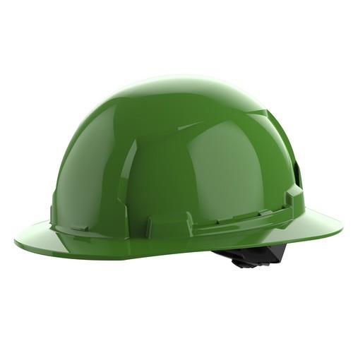 BOLT™ Green Full Brim Hard Hat w/4pt Ratcheting Suspension(USA)- Type 1, Class E