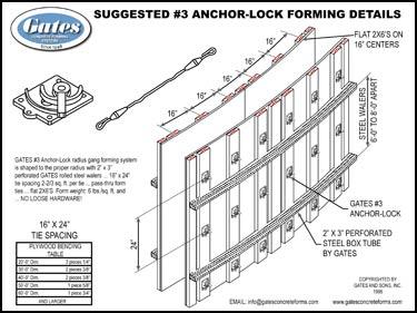 Radius #3 Anchor Lock form. 2x6's on the flat vertical with the #3 Anchor Lock mounted on the 2x6. The 2x3 telespar rail holds shape, but is not part of the loading bearing member.