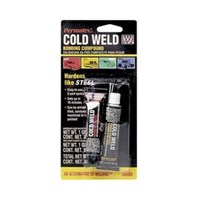 A 15-minute, two-part adhesive and filler system that eliminates the need for welding or brazing. It repairs, fills and bonds to iron, steel, brass, bronze, aluminum and copper. Once cured, it can be drilled, tapped, threaded, filed, sanded and painted. Resists most automotive, shop and cleaning fluids. Withstands temperatures to 300°F intermittent. Over 3,000 PSI shear strength on steel.
