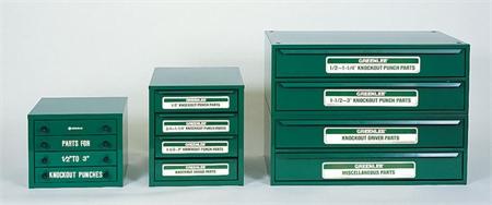 Includes balanced stock of replacement parts in sturdy steel cabinets