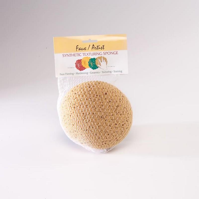 Soft beige colored polyester in a round sponge with open pores for faux finishing and general cleaning.