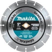 The Makita 9" Diamond Blade, Segmented, General Purpose (A-95831) is ideal for wet or dry cutting applications including block, brick and concrete. The segmented rim design incorporates slots to deliver a faster, cooler cut, with laser-welded segments for improved joint strength. In addition, the optimum bond matrix is engineered for faster, smoother cutting and a long working life. Makita Diamond blades are part of Makita's broad line-up of solutions for concrete, stone and masonry applications.