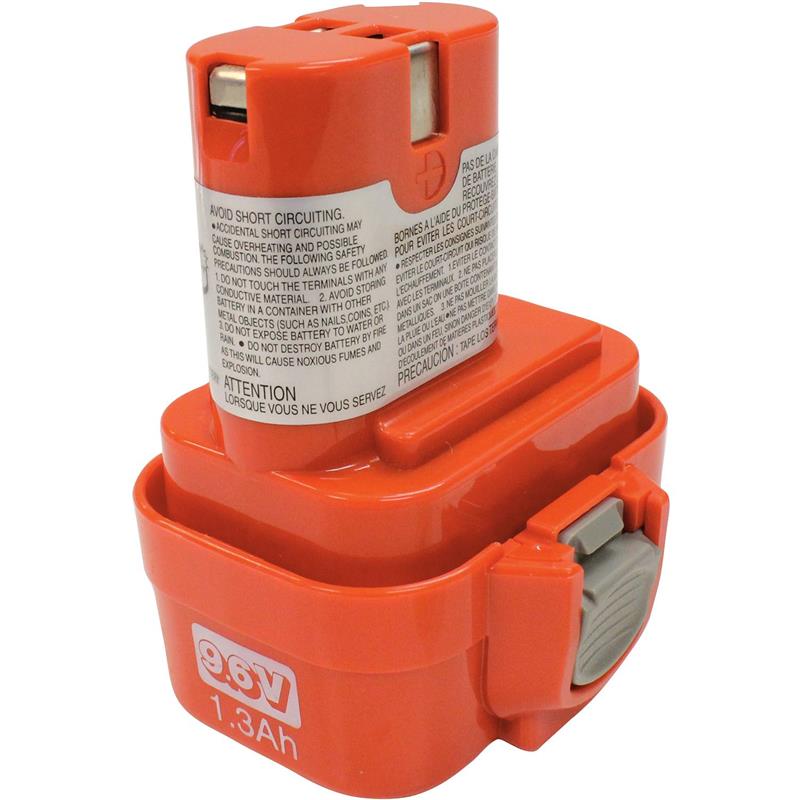 9.6V Nickel Cadmium battery provides 1.3 Amp hours of power. Makita's 9.6-volt Nickel-Cadmium Battery has a longer run time, lasts longer, and produces no "memory effect." Its multi-contact terminals ensure a tight connection to the power tool, even under tough working conditions.