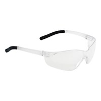 Frameless wraparound, 9.5 base curve, safety glass provides optical protection. 4-position adjustable length temples have non-slip rubber tips. Integrated nose pads. Stainless steel hinge screws. Lenses offer 99% UV protection. Meets ANSI Z87.1 - Impact.