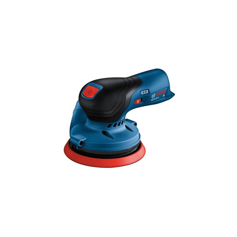 This 12V Max random orbit sander is designed to tackle hard-to-reach work areas with power and control. It features a well-balanced ergonomic palm grip, which allows your hand to be closest to the work material to avoid tilting and pressing down, for best results. The easy-to-reach on/off switch offers intuitive operation. The Bosch GEX12V-5 Brushless 5 In. Random Orbit Sander has a powerful 12V Max brushless motor, and it is engineered for professional applications. The speed selector delivers best results in different materials and applications. The sander has a 5 In. 8-hole sanding pad, which provides optimal dust collection when the sander is attached to a vacuum or a dust bag. The dust pad is ideal for both flat and concave/convex surfaces. The included dust bag allows mobile dust collection, while the tool has an interface for vacuum hose attachment. It also has soft-start technology, constant speed and a hook-and-loop backing pad. The sander has a compact shape with close-to-the-workpiece design for control in hard-to-reach areas.