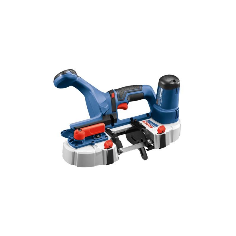 The Bosch GCB18V-2N 18V Compact Band Saw is designed to make pro cuts in tight spaces, corners and overhead, weighing only 7.3 Lbs. (tool only, not including battery). The saw is up to 60% lighter and 40% more compact than standard deep-cut band saws. It has a cut rate of 530 surface feet per minute. It accommodates most common-size materials, with cuts up to 2-1/2 In. on a single pass, delivering precise cuts to a variety of metal materials – including conduit, uni-strut, threaded rod, and copper and black pipe. The saw can save time by making clean cuts in pipe (with fewer sparks), lessening the need for grinding and deburring after the cut. It has a tool-free blade guard, which can help to protect the blade from debris, and tool-free blade change, with easy access to the blade and easy blade installation. This tool has a conveniently placed centered handle and an enhanced soft-grip main handle, plus an LED light.