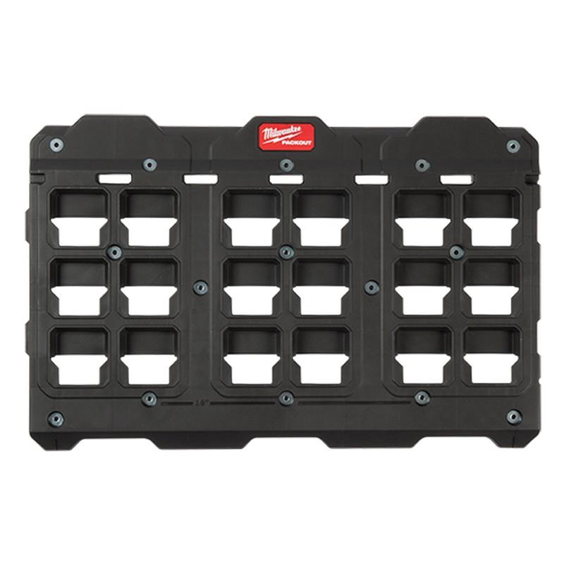 Our PACKOUT™ Large Wall Plate features Quick-Alignment Tabs to make installing rows and columns of multiple wall plates easier. This Large Wall Plate is constructed with Metal Reinforced Mounting Points and impact-resistant polymers that ensure secure mounting in shop, transit, and site environments. Our Large Wall Plate has a 150lbs weight capacity when mounted in the shop, and a 75lbs when mounted in vehicles. As part of the PACKOUT™ Modular Storage System, the PACKOUT™ Large Wall Plate allows you to customize your storage system and keep your storage solutions organized. MILWAUKEE® PACKOUT™ is the industry's most versatile and durable modular storage system.