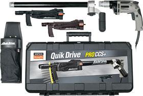 PROCCS+ Combo System includes QDPRO300SG2 attachment, QDPRO200SG2 attachment, extension for stand-up driving, quiver for keeping screws at your fingertips, tool case, choice of DeWalt® or Makita® screwdriver motor.